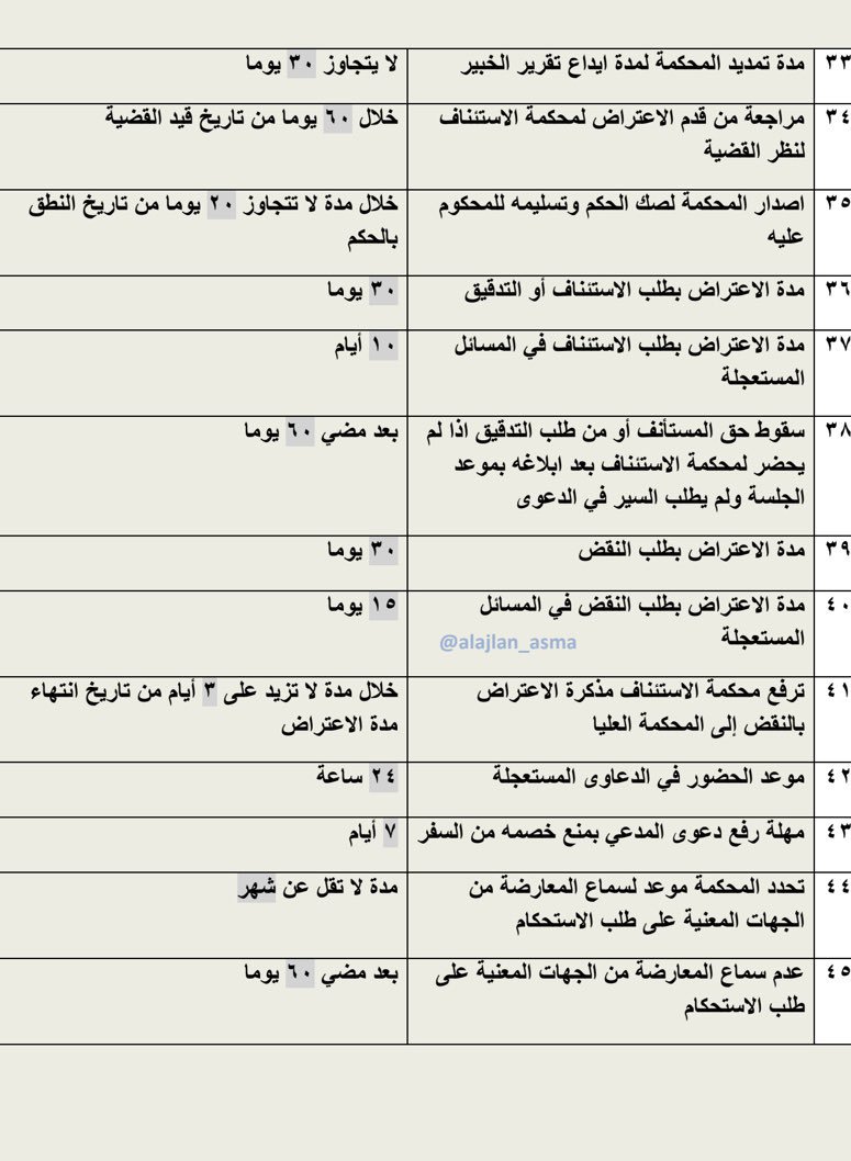 المستشار القانوني Sur Twitter نظام المرافعات الشرعية هل بالإمكان توضح لنا المدد النظامية التي وردت في نظام المرافعات الشرعية ولائحته التنفيذية الجواب ارفق لكم هذه الصفحات التالية من