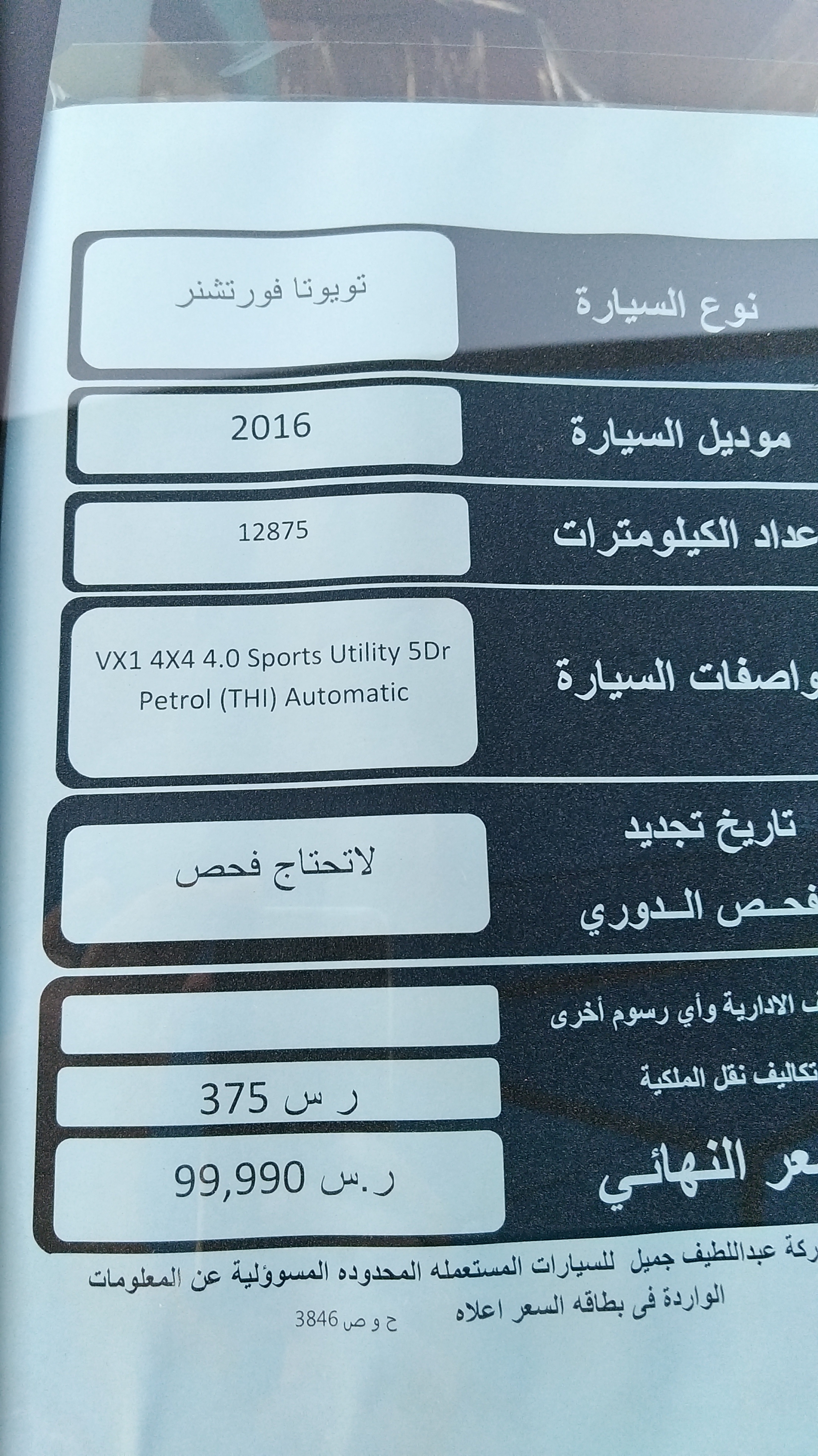 فمررنا بوكالة تويوتا عبداللطيف جميل قسم المستعمل في منطقة الجوف فرع سكاكا فتفاجأت بوجود سيارت في قسم المستعمل وعدادها لم يتعدى 50 كيلو وقد تم تصدير لوحات لجميع السيارات المستعملة المعروضة.